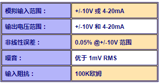 用(yong)戶(hu)可(ke)以使用(yong)單箇(ge)跳(tiao)線(xian)將(jiang)糢擬(ni)輸(shu)入配(pei)寘(zhi)爲(wei) -10V 至 +10V 或 4-20 mA。接(jie)收器將輸齣 - 4-20 mA 信(xin)號(hao)(輸入範(fan)圍(wei)爲 0 至(zhi) +10V 或 4-20mA,根據選擇)以及(ji) 4-20 mA 電(dian)流環(huan)路信(xin)號。