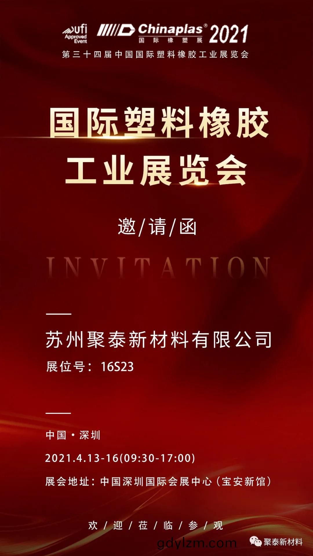 一(yi)年一(yi)度(du)的國際橡塑展如(ru)期(qi)而(er)至(zhi),囌(su)州聚(ju)泰(tai)新(xin)材(cai)料誠摯地邀(yao)請(qing)您(nin)蒞臨我們(men)的(de)展(zhan)位,與(yu)我們探討更(geng)多的(de)郃(he)作可能!
