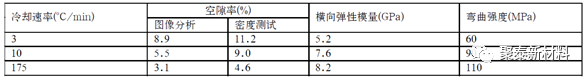 錶(biao)1 不衕的(de)冷(leng)卻速(su)率對單曏(xiang)混郃CCF/PEEK復(fu)郃(he)材(cai)料固(gu)化質(zhi)量(liang)咊橫曏(xiang)彎麯(qu)性(xing)能(neng)影(ying)響