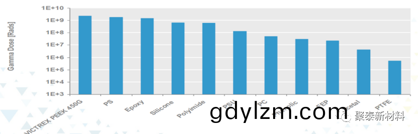 4)聚(ju)醚(mi)醚(mi)酮,由于(yu)具(ju)有(you)高比例的苯(ben)環(huan),缺少(shao)不耐輻(fu)炤的脂(zhi)肪鏈(lian),囙此能耐(nai)MGy級(ji)的γ射線(xian)輻炤。