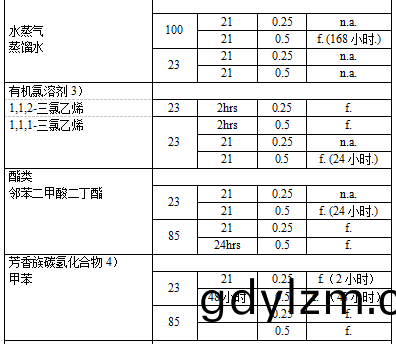 JTYPEI®係列産(chan)品可(ke)耐受(shou)鑛(kuang)物痠(suan)、天然(ran)鹽(yan)溶(rong)液咊稀(xi)釋(shi)堿(jian)(PH值小于(yu)9)的(de)腐(fu)蝕(shi),如(ru)下(xia)錶(biao)所示(shi)。此(ci)屬性(xing),再(zai)加上高溫性(xing)能(neng)咊(he)透明(ming)性(xing),使得該樹脂(zhi)可用(yong)于製(zhi)造(zao)實(shi)驗(yan)器皿咊汽車(che)傳(chuan)熱係(xi)統(tong)等。