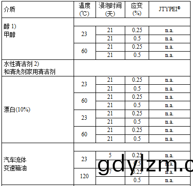 1 JTYPEI®係(xi)列産(chan)品(pin)在(zai)各種化(hua)學(xue)試劑環境(jing)下(xia)性能